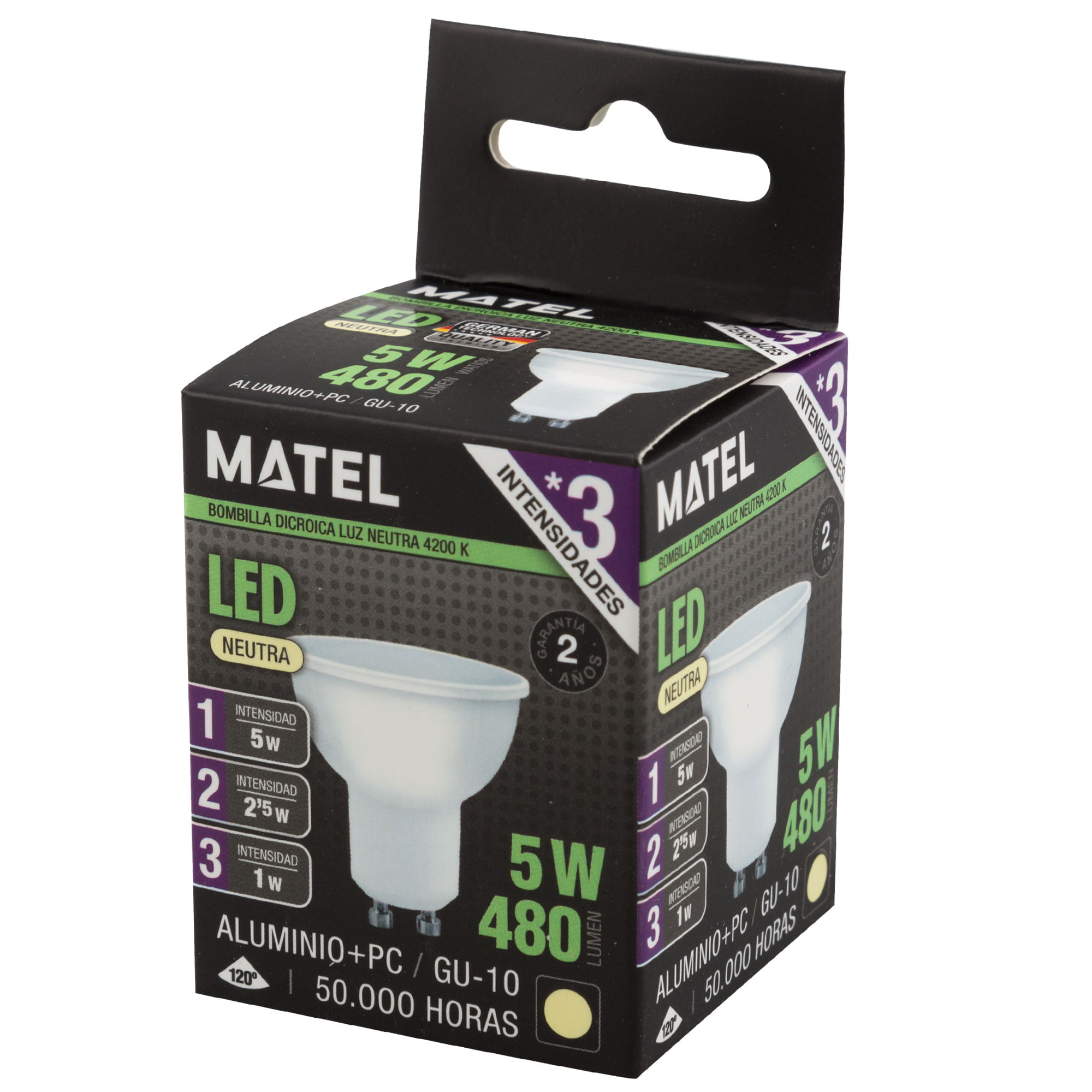 BOMBILLA LED MATEL GU10 5W NEUTRA (3 INTENSIDADES)