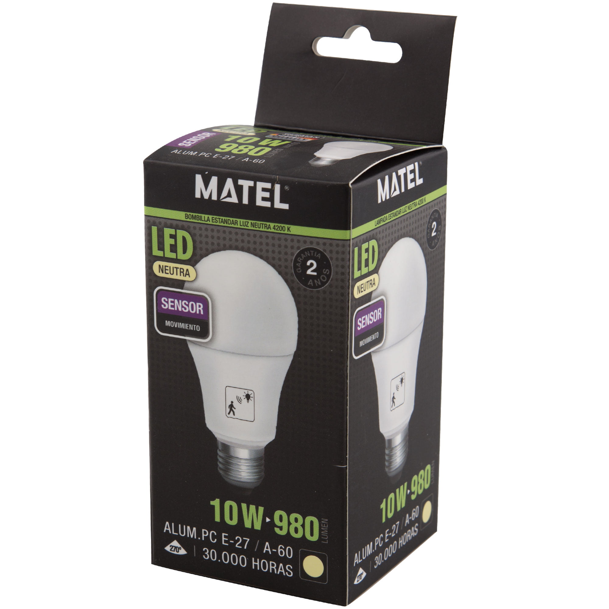 BOMBILLA LED MATEL SENSOR MOVIMIENTO E27 10W NEUTRA