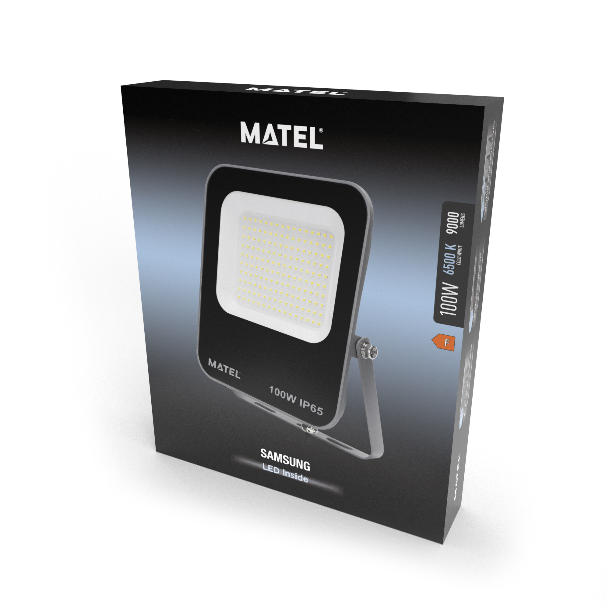 Potencia de 100W, ideal para iluminar áreas amplias como naves industriales, fachadas o aparcamientos.